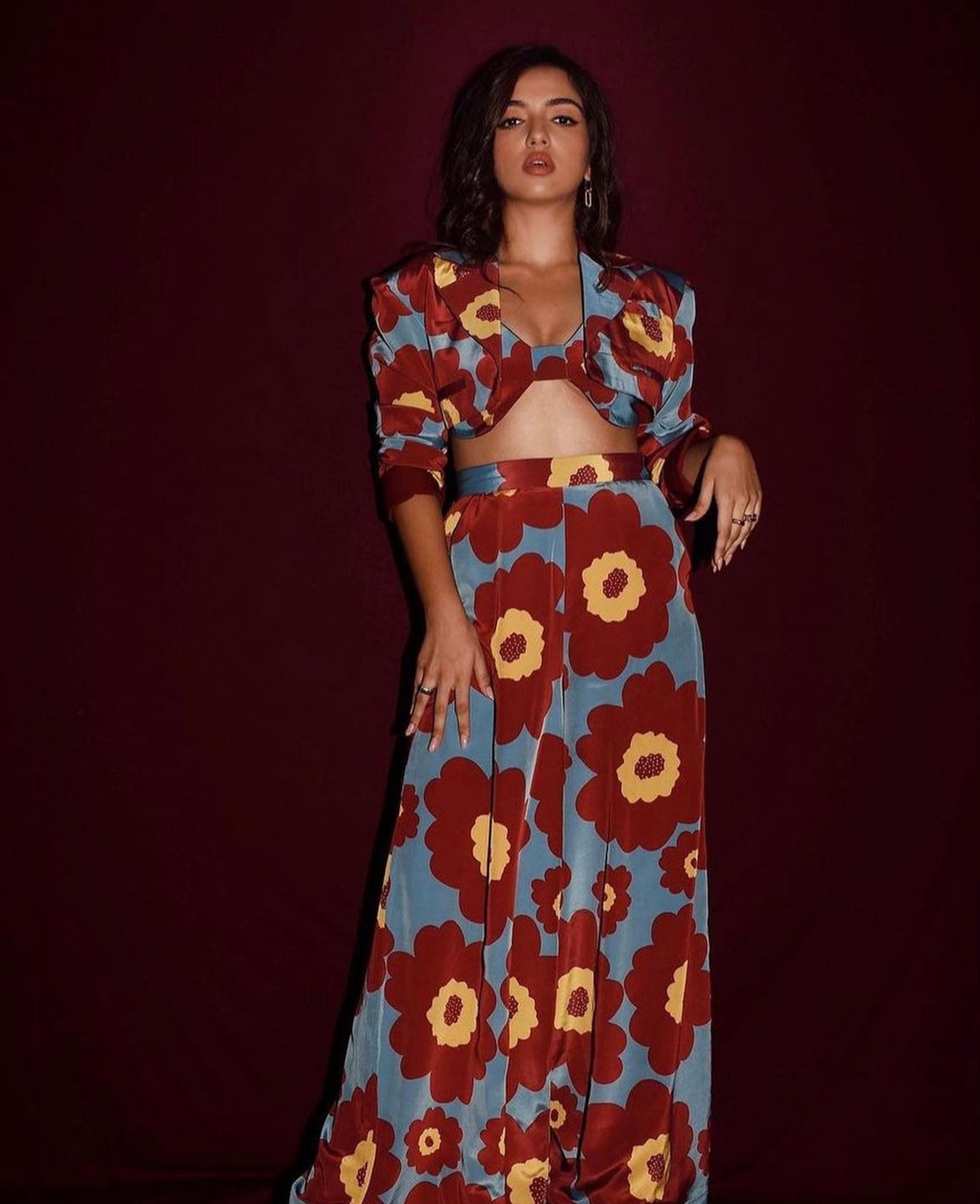 Looking for a chic outfit, here we are with our sassy cropped blazer with a snazzy bralette and flared pants