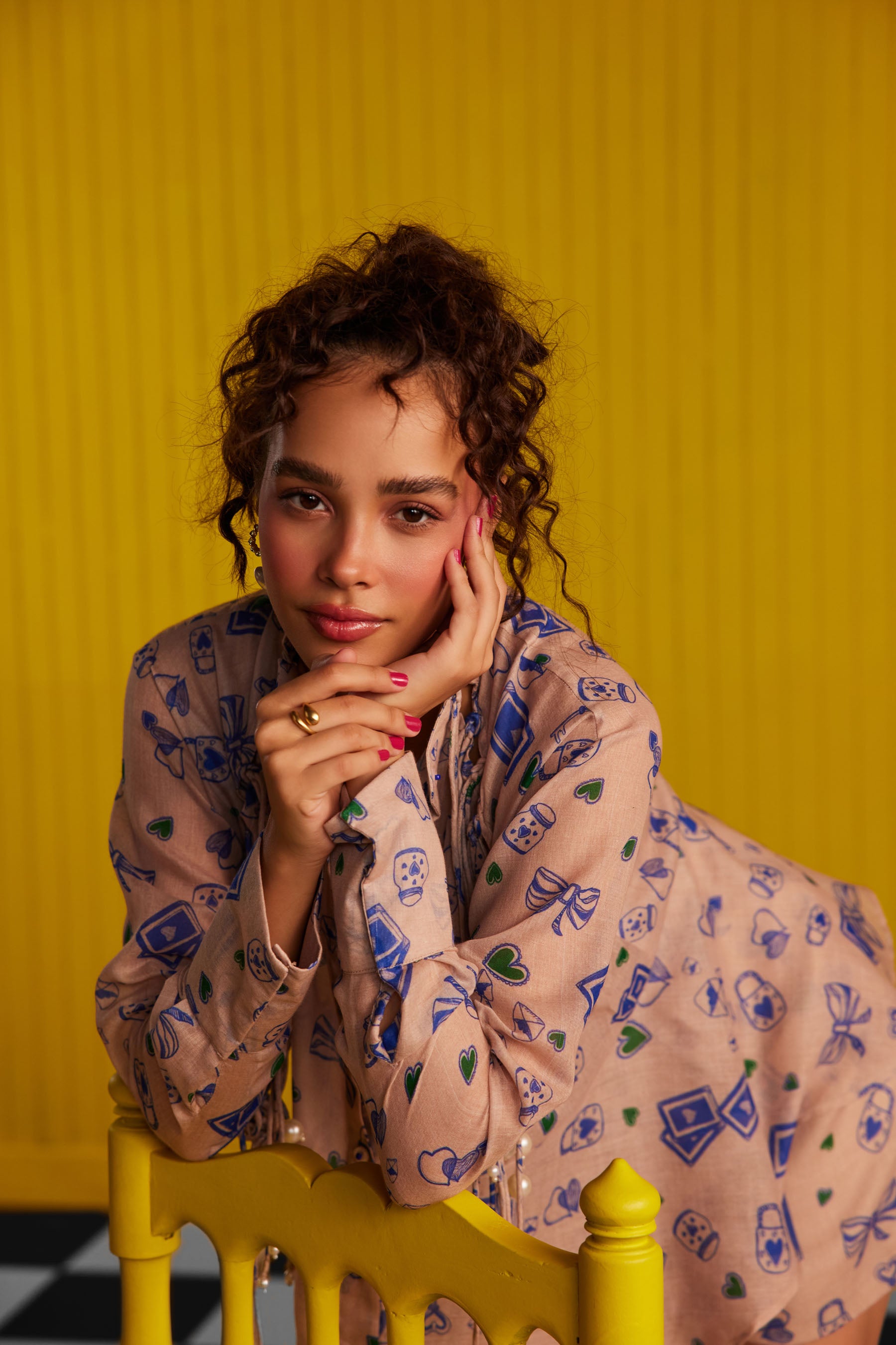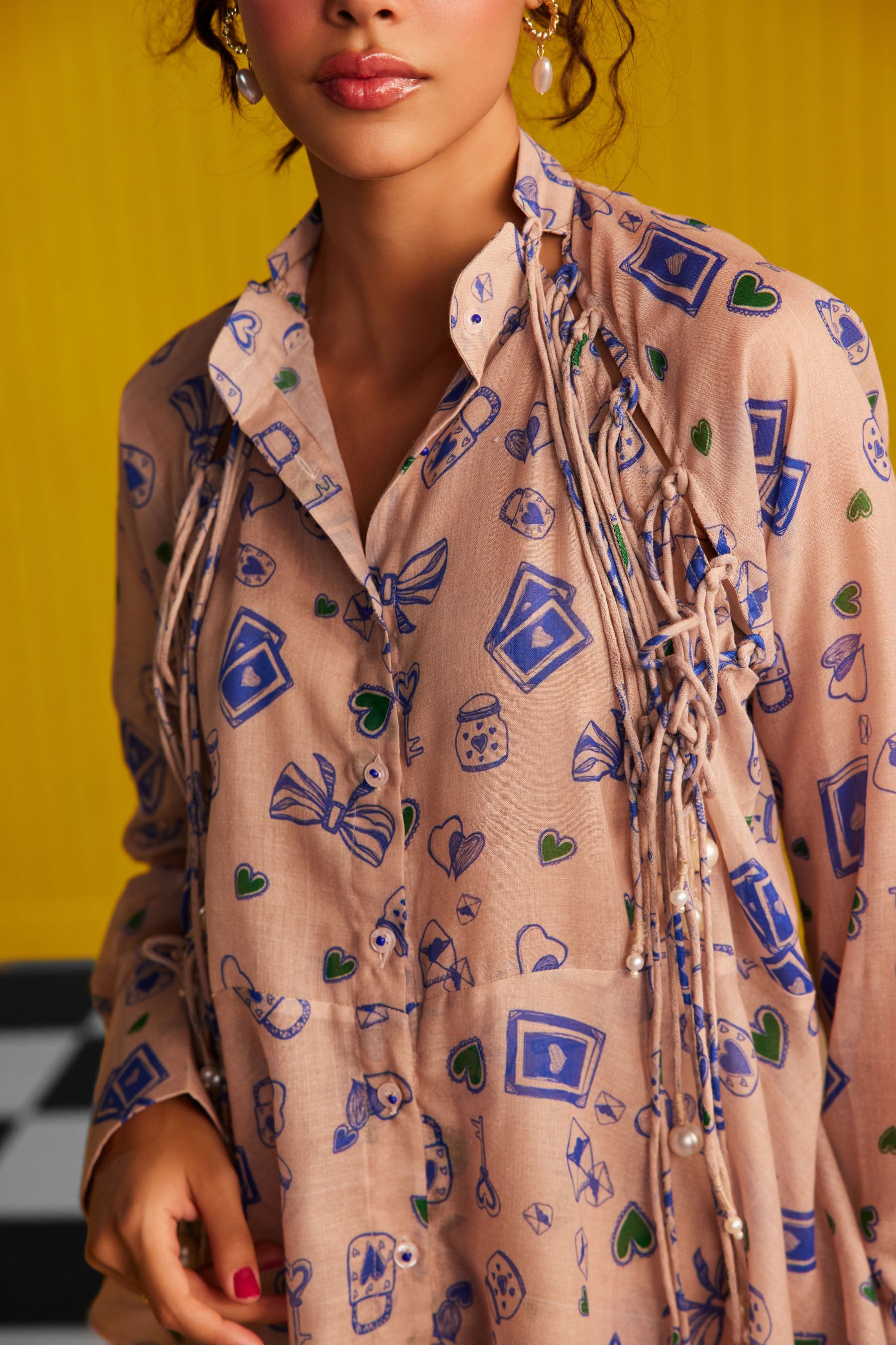 The ""Heart string chic"" top versatile addition to resort ensemble, crafted in a breathable blend cotton is a statement and a versatile style. This top promises comfort and style in equal measure. It adorned with fringes falling down the classic collar, capturing the resort yet chic mood.