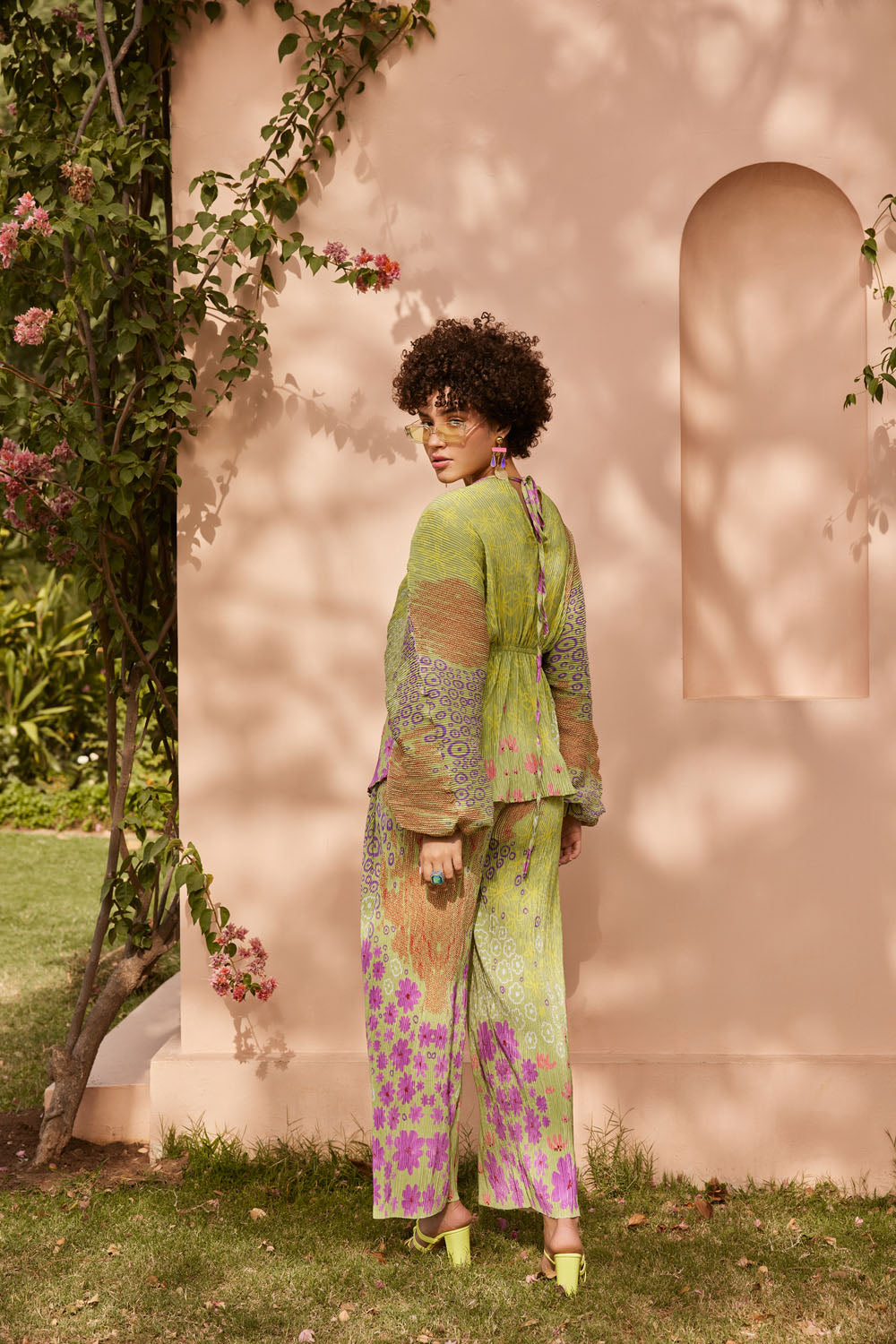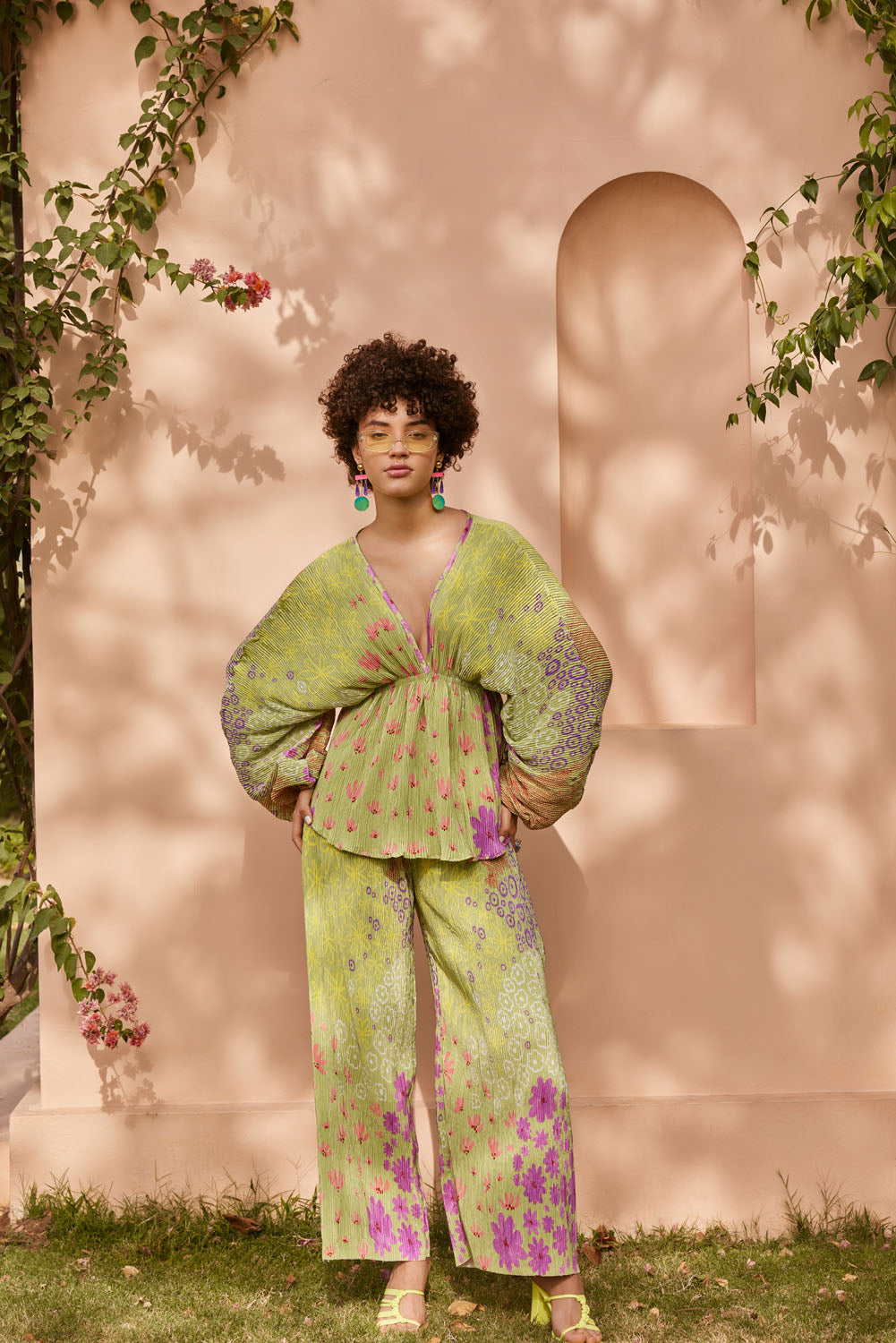 A very unique pleated textured kaftan with dolman sleeves and pants