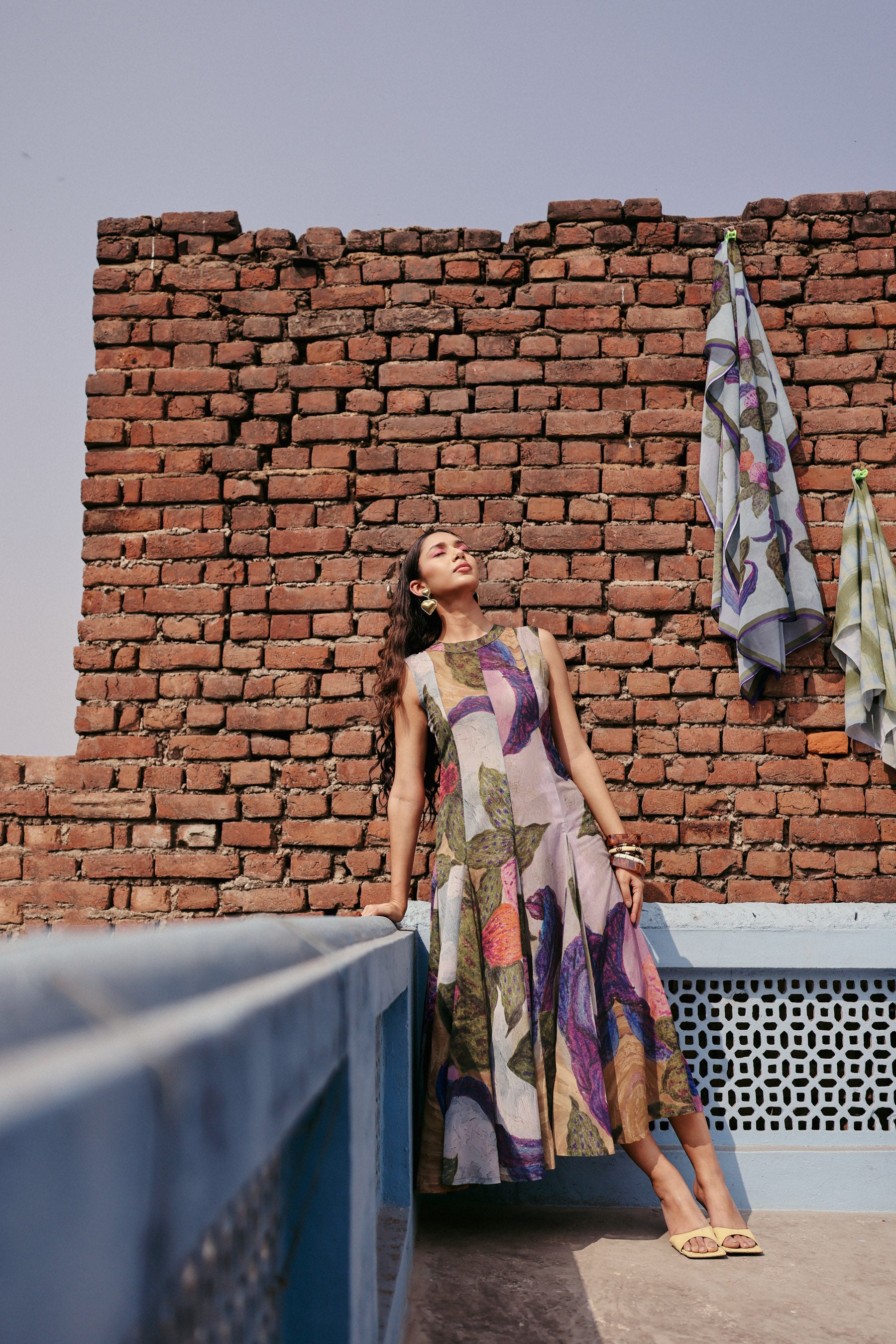 A flowy A-line sleeveless Dress with a round neckline designed in floral print . made in lightweight fabric for easy movement and a morden , effortless look.